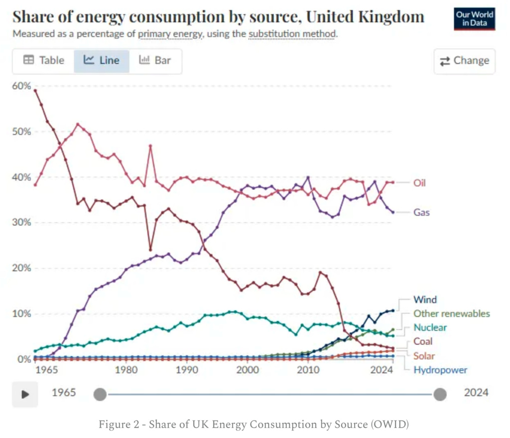 Given that coal, oil and gas provide nearly three quarters of the UK’s energy (see Figure 2), we might hope that the Government would react decisively to secure energy supplies in the face of such an energy supply shock.
