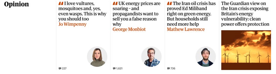 We should understand that this is the Guardian’s ideological motivation before we take any of its subsequent claims at face value. (It should be recalled that one of the newspaper’s longstanding heroes, Paul Ehrlich, died last week.) The “Guardian view of the Iran crisis” is that Ed Miliband has “grasped” a “reality” that is beyond the understanding of his counterparts in the Conservative and Reform parties. “Green power is in effect an insurance policy against geopolitical risk,” it argues, claiming that the counter-position of increasing domestic natural gas production would not yield any benefits, chief among them Britain’s “exposure to volatile markets”. On this logic, Britain’s oil and gas wells are unable to substantially alter the volume of global supply, and will therefore be unable to alter the price paid by British consumers. “It will mainly boost oil company profits,” claims the editorial.
