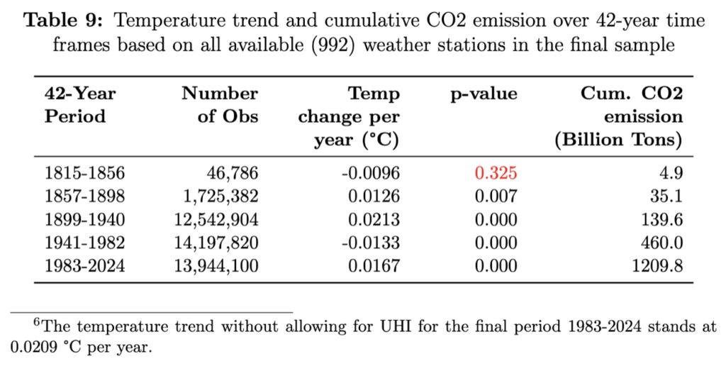 Recently published remarkable research analysing over 42 million global temperature recordings from nearly 1,000 stations has cast serious doubt on the claimed link between carbon dioxide emissions and rising temperatures. The huge statistical work collected data from before 1900 to 2024 and found an overall annual warming trend of 0.0054°C after adjusting for growing unnatural urban heat effects. What is truly revealing about this important analysis is that it shows an obvious disconnect between the rise in anthropogenic CO2 and the sharpest warming occurring in the early 20th century, when industrialisation was confined to relatively few countries.