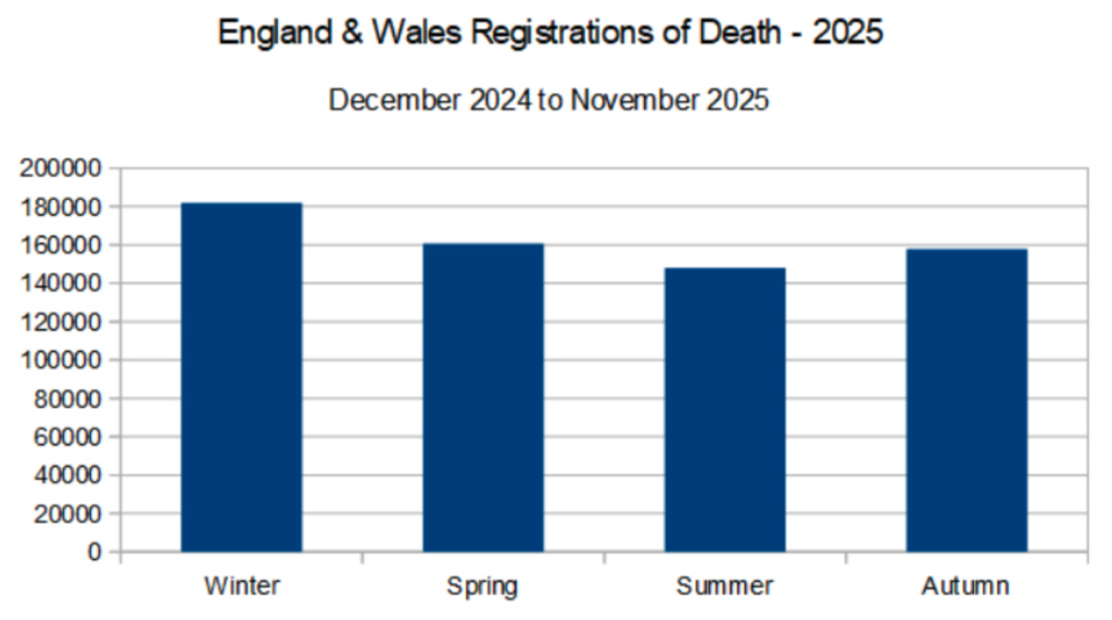 Strangely, the UKHSA has only been publishing these statistics since 2024. People might therefore reasonably presume that this is just another scare story to sell Net Zero. After all, they never publish excess death statistics for spring and autumn, when the death rate is much higher.
