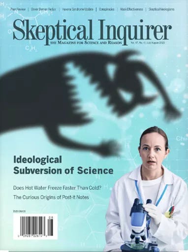 For a “skeptical” magazine, Skeptical Inquirer often seems to adopt a position of hard-core, religion-aping belief in many of the key Skeptical shibboleths that appear in its pages. The Daily Sceptic (‘Sceptic with a c’, and not only because it’s based in Britain) tends to be generally Establishment-querying in its opinions. Skeptical Inquirer, on the other hand, tends to reliably reinforce Establishment ideologies in its contents, both scientific and political. Its true title should be the Uncritical Inquiry-Blocker.